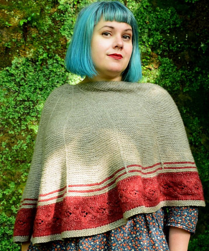 Knowth – это полукруглая шаль, связанная пряжей 2-х цветов. Снятые петли
